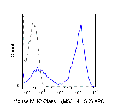 The M5/114.15.2 antibody may be used for analysis of mouse cells expressing MHC Class II alloantigens as described. Please note that the M5/114.15.2 clone may also be referred to as M5/114 in the literature.